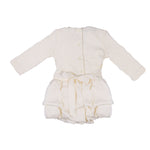 For baby girls, the Kate and Mack white long sleeve dress offers a charming design with a round neck and button-back closure.