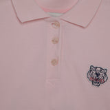 Short sleeves cotton polo dress for girls with tiger head motif, polo collar, and front button fastening. Iconic designer girls dresses from Kenzo.