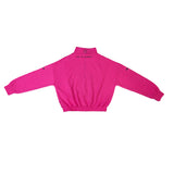 A set of 3 pieces including a jacket,a short sleeves t-shirt and a jogging pants.The jacket is bubble gum,it has an elastic waistband.The pants are 47% viscose with an adjustable waistband.